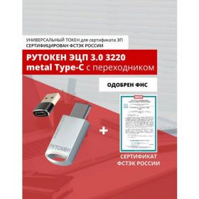 Найти - Носитель для электронной подписи (ЭЦП) Рутокен ЭЦП 3.0 3220 metal Type-C с серт. ФСТЭК и переходник на Type - A