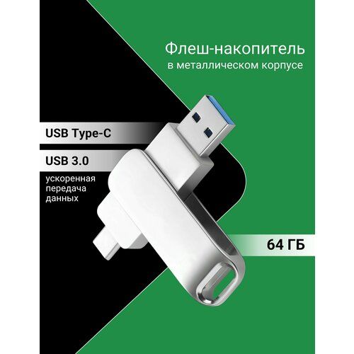 Найти - Флеш-накопитель 64 ГБ USB Type-C и USB 3.0 с поворотным металлическим корпусом