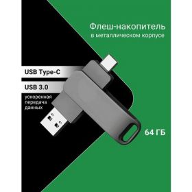 Найти - Флеш-накопитель 64 ГБ USB Type-C и USB 3.0 с поворотным металлическим корпусом