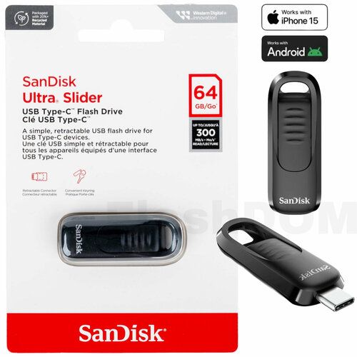 НАЙТИ ВЫГОДНЕЕ - Флеш-накопитель SanDisk 64 ГБ Type C Ultra Slider до 300 Мб/с USB 3.2 Gen 1