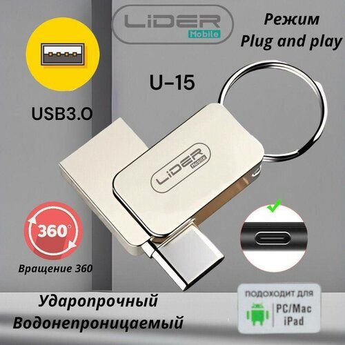 Найти - Флешка Type-C - USB 3.0 64GB / высокоскоростная, ударопрочная и водонепроницаемая / флеш-накопитель 2в1 64ГБ