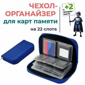 Найти - Органайзер для карт памяти, 22 слота. Чехол для мемори карт игровых приставок SD, CF, сим-карт от телефона. Синий