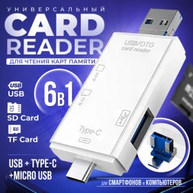 Найти - Картридер ридер 6 в 1 OTG, USB, Micro SD, Type-C, Micro USB, T, Card reader адаптер-переходник универсальный белый