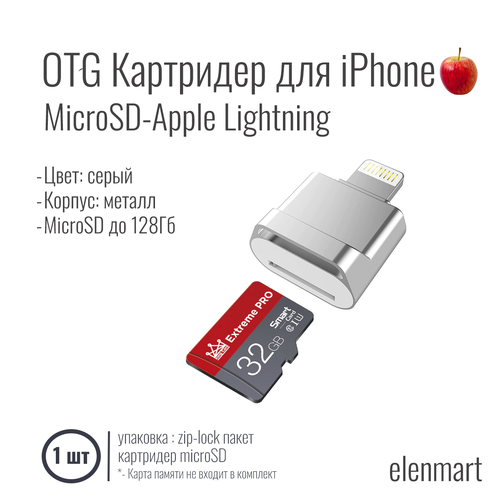 Найти - OTG картридер MicroSD для Apple iPhone, iOS 13+, серебристый