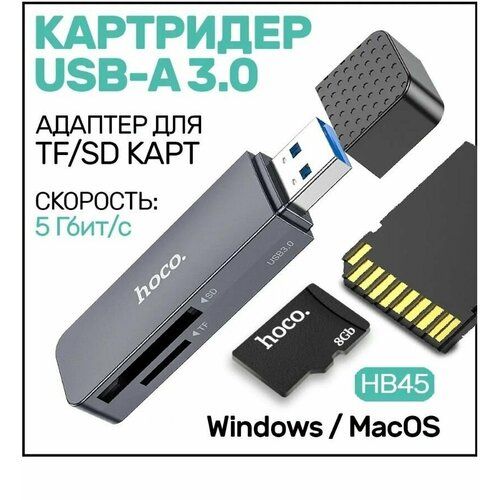 Устройство чтения карт памяти для SD/TF (micro SD) интерфейсом подключения USB 3.0 "два в одном" HB45
