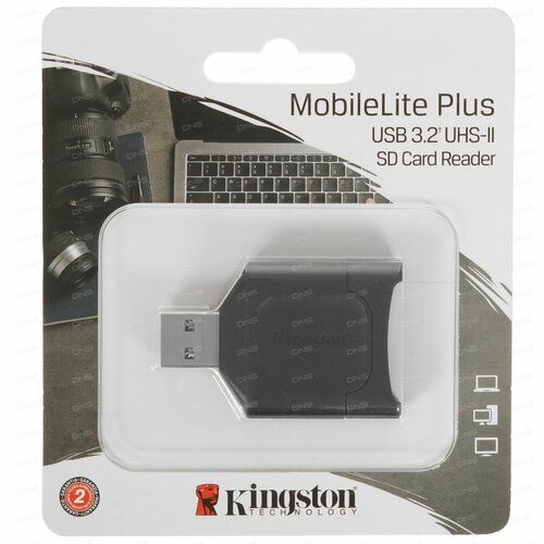 Кард-ридер Kingston MobileLite Plus использует для подключения высокоскоростной интерфейс USB 3.2 Gen1 Type-A, благодаря которому обеспечивается быстрое чтение данных с карт памяти. Модель представлена в компактном корпусе черного цвета с размерами 36.6x20x7.5 мм, за счет которых ее можно держать под рукой на работе и брать с собой в любую поездку. Кард-ридер Kingston MobileLite Plus может считывать данные с карт памяти Micro SD, Micro SDHC и Micro SDXC, которые имеют поддержку класса скорости UHS-I.
