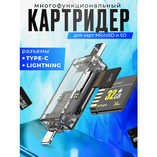 Найти - Картридер Type-C - Lightning для чтения карт памяти SD и Micro SD / TF, переходник для телефона, ноутбука, универсальный