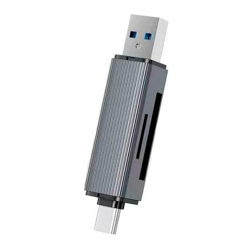 Картридер USB 3.0/Type-C на micro SD+SD, серый