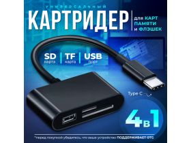 Картридер универсальный 4 в 1 USB Type C Micro USB, устройство для чтения SD-карт памяти, U-диск, OTG адаптер, конвертер для планшетов, черный 103538218670