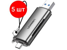 Комплект 5 штук, Картридер UGREEN USB-C + USB-A 3.0 для карт памяти TF/SD (50706) 102531075248