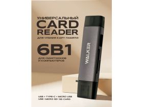 Внешний картридер Type-C-USB, WALKER, WCD-72, переходник адаптер для карты памяти microsd в sd, card reader для пк, устройство чтения, черный 102656053961