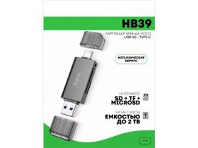 Картридер USB 3.0 - Type-C для MicroSD, SD HB39 (металлик) 4713897596