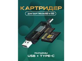 Картридер Type-C - USB для чтения карт памяти SD и Micro SD / TF, переходник для телефона, ноутбука, универсальный 4330637055