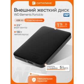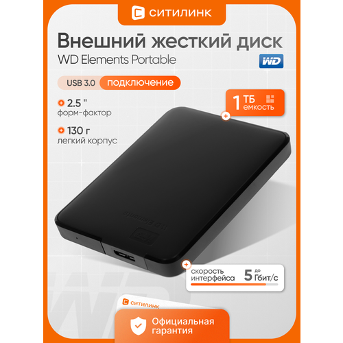 Найти - Внешний диск HDD WD Elements Portable WDBUZG0010BBK-WESN, 1ТБ, черный