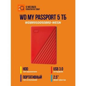 Найти - Внешний накопитель HDD Western Digital My Passport 5 Тб USB 3.2 Gen 1, красный