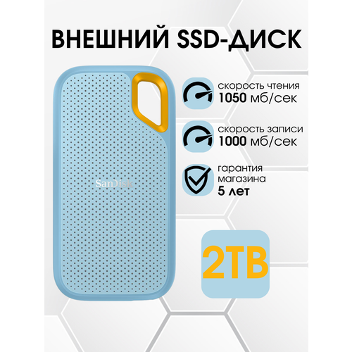 Найти - 2 ТБ Внешний SSD SanDisk Extreme Portable V2 1050 Мбит/с USB-C, USB 3.2 Gen 2 (SDSSDE61-2T00-G25B) Sky Blue