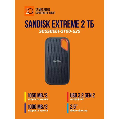 Внешний накопитель SSD SanDisk Extreme 2 Тб USB 3.2 Gen 2 Type C - это надежное и производительное решение для хранения и передачи данных. Благодаря высокой скорости передачи данных, вы сможете быстро и без проблем переносить большие объемы информации.