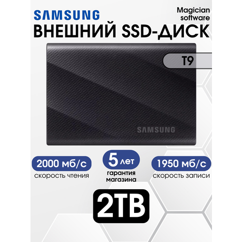 Найти - 2 TB Внешний SSD Samsung T9 Portable 2000 Мб/с, черный (MU-PG2T0B/AM) USA