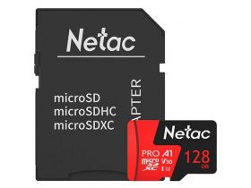 Карта памяти Netac microSDXC 128 ГБ Class 10, V30, A1, UHS-I U3, R 100 МБ/с, адаптер на SD, 1 шт., черный/красный 101282629390