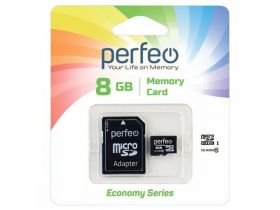 Карта памяти Perfeo microSD 8 ГБ Class 10, UHS-I, W 10 МБ/с, адаптер на SD, 1 шт., черный 101282629331