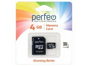 Карта памяти Perfeo microSDHC 4 ГБ Class 10, UHS-I, W 10 МБ/с, адаптер на SD, 1 шт., черный 101282629333