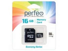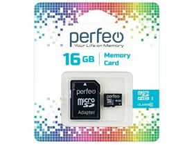 Карта памяти Perfeo microSD 16 ГБ Class 10, UHS-I, W 10 МБ/с, адаптер на SD, 1 шт., черный 101282629330