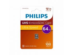 Флеш карта microSD 64GB PHILIPS High Speed microSDHC Class UHS-I U3, V30, A1, 100MB/s 103571047274