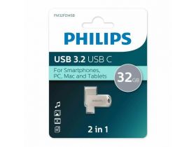 Флеш накопитель 32Gb PHILIPS 2-in-1 USB 3.2 USB C, OTG, USB 3.2/Type-C, Металл, 100 MB/s 103571343412