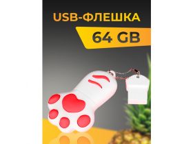 USB Флеш-накопитель 64 ГБ для компьютера и ноутбука, Flash накопитель для ПК, подарочная USB флешка 64 Гб, Лапка белая 102770062702