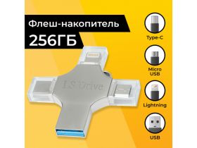 Флешка 256 Гб 4 в 1, Lightning, Type-C, USB, Micro, Внешний накопитель универсальный 102654804963