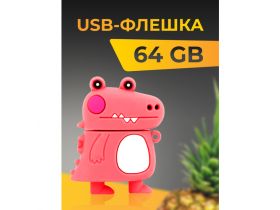 USB Флеш-накопитель 64 ГБ для компьютера и ноутбука, Flash накопитель для ПК, подарочная USB флешка 64 Гб, Динозавр розовый 4314195027