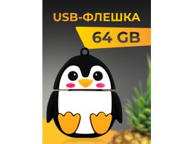 USB Флеш-накопитель 64 ГБ для компьютера и ноутбука, Flash накопитель для ПК, подарочная USB флешка 64 Гб, Пингвин 101969583018