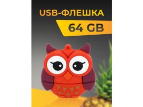 USB Флеш-накопитель 64 ГБ для компьютера и ноутбука, Flash накопитель для ПК, подарочная USB флешка 64 Гб, Сова оранжевая 101969567532