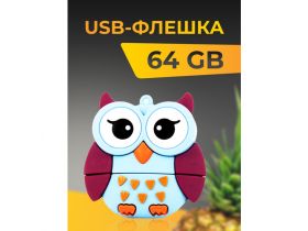 USB Флеш-накопитель 64 ГБ для компьютера и ноутбука, Flash накопитель для ПК, подарочная USB флешка 64 Гб, Сова голубая 101969519319