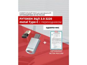 Носитель для электронной подписи (ЭЦП) Рутокен ЭЦП 3.0 3220 metal Type-C с серт. ФСТЭК и переходник на Type - A 103545395886