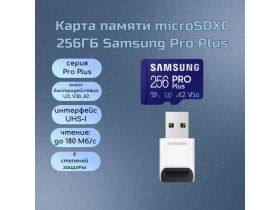 Карта памяти Samsung Pro Plus microSDXC 256 GB Class 10, V30, A2, UHS-I U3, R 180 МБ/с, с переходником на USB 103732847813