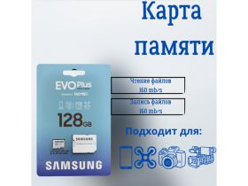 Карта памяти microSDXC 128Gb Samsung EVO Plus UHS-I U3 A2 + ADP 160 Mb/s NEW 4354767030
