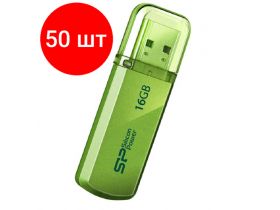 Комплект 50 штук, Флеш-память Silicon Power Helios 101 16GB USB 2.0, зеленый, алюминий 102531127573