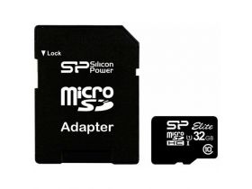 Карта памяти Silicon Power microSDHC 32 ГБ Class 10, UHS-I, R 100 МБ/с, адаптер на SD, 1 шт., черный 9282846