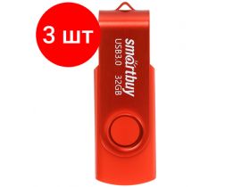 Комплект 3 шт, Память Smart Buy "Twist" 32GB, USB 3.0 Flash Drive, красный 103030096223