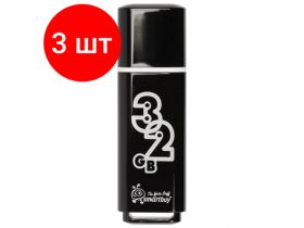 Комплект 3 шт, Флеш-диск 32 GB, SMARTBUY Glossy, USB 2.0, черный, SB32GBGS-K 103104994811