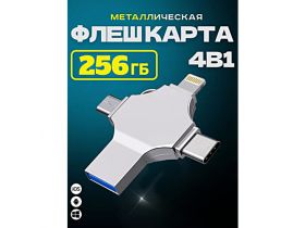 Внешний накопитель 4 в 1 USB флешка Lightning, MicroUSB, Type-C, USB, FLASH накопитель для iOS, Android, Windows, 256gb, Серебристый 103655530720