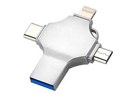 128GB / Флешка 4 в 1 - USB 3.0, Lightning, Type-C, Micro / Водонепроницаемая, многофункциональная для PC, Android, IOS 103526891882