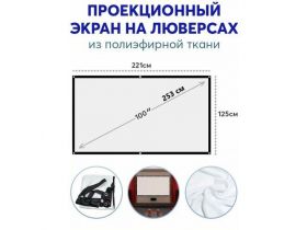 Экран для проектора 100 дюймов 254см не мнущийся, белый с кольцами и крюками для темных стен (формат 16:9) 102755720157