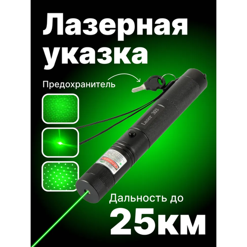 Лазерная указка - Green Laser 303. Эта модель - многофункциональный и универсальный инструмент, который может быть использован в различных ситуациях, включая поиск потерявшихся людей в лесу, создание лазерного шоу, игры с домашними животными, презентации на работе и многое другое.