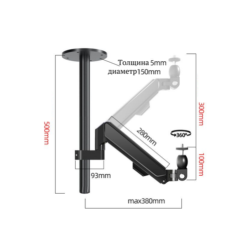 Потолочный кронштейн для проекторов Smart Monitor подходит для большинства проекторов, в том числе массивных, весом до 6 кг. Держатель изготовлен из углеродистой стали, сверху крепление покрыто напылением с "песчаной" матовой структурой. Благодаря газовой пружине кронштейн для проектора легко регулировать по высоте.