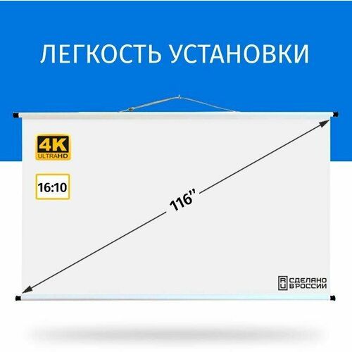 Найти - Экран для проектора Лама 250x156 см, формат 16:10, настенно-потолочный, ручной, цвет белый, 116 дюймов