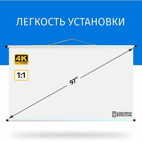 Легкость установки и гибкость троса позволит установить экран на любую поверхность для максимально комфортного просмотра.