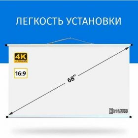 Найти - Экран для проектора Лама 150x85 см, формат 16:9, настенно-потолочный, ручной, цвет белый, 68 дюймов
