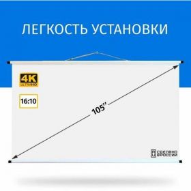 Найти - Экран для проектора Лама 225x141 см, формат 16:10, настенно-потолочный, ручной, цвет белый, 105 дюймов